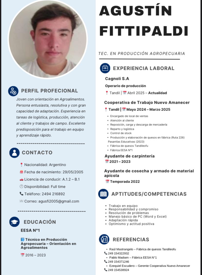 | Fitipaldi Agustin | 2494 216892 | agusfi@gmail.com | Tec en Prod Agropecuaria – Orientación Agroalimentos | https://exalumnosgranja.com.ar/wp-content/uploads/2025/11/Cb-agustin-original.png |